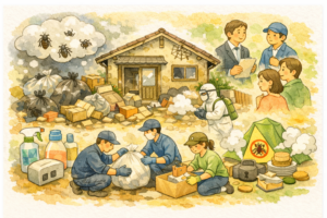 料金の安さだけでなく、見積り内訳、搬出範囲、処分方法の説明、追加料金条件、貴重品探索の対応、写真報告の有無を確認してください。自治体の案内も見ながら、説明が曖昧な業者は避けたほうが安心です。
