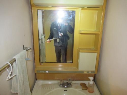 シンプルで機能的な洗面台エリア。朝の準備もスムーズです。