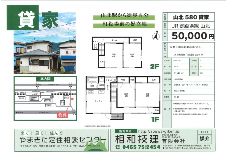 賃貸 山北駅から徒歩8分、役場前の好立地物件