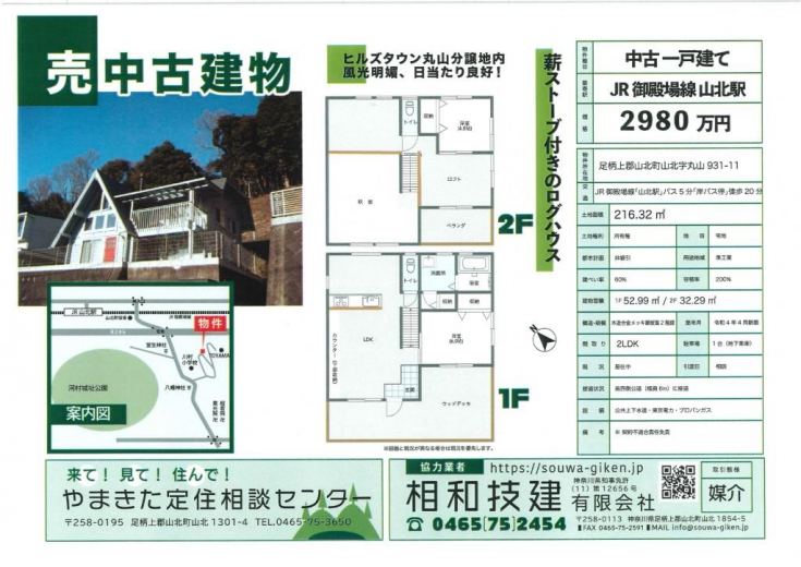 三角屋根が特徴的なこのログハウスは、山北町に調和する魅力的な佇まいです。令和4年築のため、設備や内装は新しく、木の温もりを感じる住空間が広がります。日当たり良好な立地に加え、駐車場完備で利便性も抜群。週末のリフレッシュを求めるセカンドハウスや、都会からの移住を目指す家族に最適な選択です。