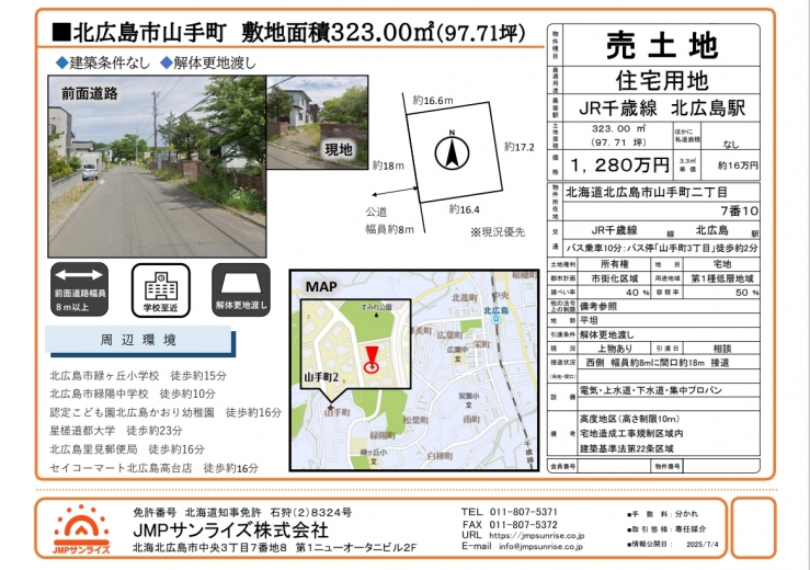 その他施設 | ・認定こども園北広島かおり幼稚園→徒歩約16分 ・星槎道都大学→徒歩約23分 ・北広島里見郵便局→徒歩約16分 |